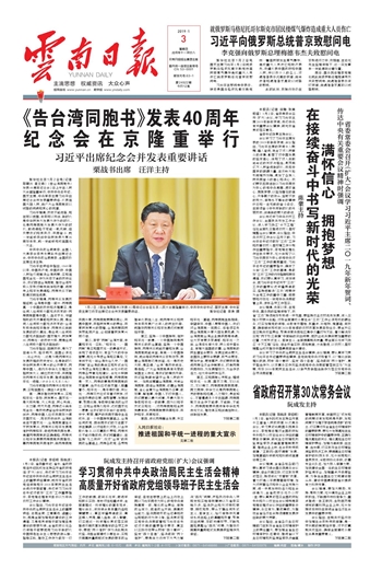 会议学习了习近平主席发表的2019年新年贺词。会议指出,习近平主席的贺词令人鼓舞、催人奋进,饱含了对人民群众的深情,彰显了对中国发展的坚定信心,体现了对人类前途命运的关怀与担当,激荡起亿万人民奋进新时代、共筑中国梦的磅礴力量,在云岭大地引起强烈反响,激发了各族人民共同奋斗的信心和决心。我们要紧密团结在以习近平同志为核心的党中央周围,满怀信心、拥抱梦想,以坚如磐石的信心、只争朝夕的劲头、坚韧不拔的毅力,保持永不懈怠的精神状态和一往无前的奋斗姿态,在接续奋斗中书写新时代的光荣历史,创造新的更大的奇迹。
