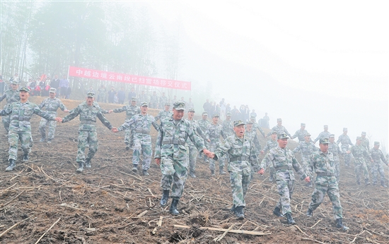 本报记者 左超 通讯员 黄巧 文/图 3年来,400余名勇士,排除雷区面积57.6平方公里,搜排19.82万枚(发)地雷和各类爆炸物。这是扫雷勇士们向人民交出的答卷。 3年来,程俊辉烈士命殒富宁县沙仁寨芭蕉塘雷区;排雷英雄杜富国在位于麻栗坡县老山西侧的坝子雷场身负重伤,失去双手和双眼……这是勇士们的付出和担当。 2018年11月16日,中越边境云南段已扫雷场移交仪式在文山壮族苗族自治州麻栗坡县老山西侧的坝子雷场举行,这也标志着持续3年多的中越边境云南段第三次大面积扫雷任务圆满完成。 移交仪式上,南部战区陆军云南扫雷大队的数十名官兵,一边高唱军歌,一边手牵着手蹚过昔日雷场,用这种特殊的徒步检验方式向百姓证明,脚下的土地都是安全的,从此可以放心地播种新的希望。 云南扫雷大队与文山壮族苗族自治州、红河哈尼族彝族自治州人民政府的代表在移交文书上签字。签字仪式后,军地领导、扫雷官兵和当地群众代表一起在昔日雷场种下象征平安、希望和丰收的南洋杉和果树。 坝子雷场,再次迸发新生命。 2015年7月,从原13、14集团军,西藏军区,云南省军区抽调400余名扫雷官兵组成扫雷部队,在经过3个多月的扫雷临战训练后,于2015年11月开赴雷场,正式启动中越边境云南段第三次大面积扫雷行动。此次扫雷行动的任务雷场有113块,断续分布在文山州、红河州的6个边境县31个乡镇35个村委会,总面积81.73平方公里。此次排雷根据不同的地形条件,采取人工搜排、火箭弹爆破扫雷、扫雷弹爆破排雷、纵火毁雷、机械扫雷等不同方法手段推进作业。 此次扫雷作业区,爆炸物种类多、分布密集、雷区面积大,平均坡度六七十度,加之经过30多年的雨水冲刷,很多爆炸物的位置发生了改变,性能极其不稳定,排雷难度世所罕见。大部分雷区现代扫雷机械作业难以跟进,再加上部分雷区附近还有村落,不能大规模爆破作业,只能采取人工搜排。 3年来,扫雷大队400余名官兵对57.6平方公里的雷区进行了彻底排除,并本着“方便群众生产生活,有效保护生态和水源区”的原则,协助地方党委、政府对24.13平方公里的雷区实施永久封围,共搜排出地雷和各类爆炸物19.82万枚(发),终结南疆雷患,还人民一片净土。 据介绍,中越边境第一次大面积扫雷从1992年持续至1994年,扫除的重点是口岸、通道沿线上的雷区;第二次大面积扫雷从1997年持续至1999年,扫除的重点是边疆人民群众的生产生活用地。2001年至2008年,组织了勘界扫雷。