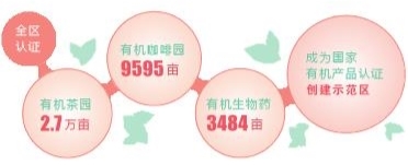 本报讯(记者 沈浩 李奕澄)普洱市思茅区依托国家现代农业产业园创建、茶园有机肥替代化肥等项目,有机产品种植基地从茶园拓展到咖啡园、生物药等特色种植业。目前,全区认证有机茶园2.7万亩、有机咖啡园9595亩,有机生物药3484亩,成为国家有机产品认证创建示范区。 思茅区茶叶和特色生物产业局负责人介绍,近年来,思茅区大力实施农药化肥“零增长”行动,绿色防控技术推广面积达29万亩,并加大生态茶园、生态咖啡园改造,为发展有机种植打牢基础。目前,思茅区已建成全省最大的有机产品种植基地,全区共有26户企业通过有机产品认证。 思茅区从茶园有机肥替代化肥入手推广有机种植,按照“茶+有机肥+配方肥”“茶+有机肥”“茶+自然生草+绿肥”的模式,推广1.7万亩有机肥替代化肥示范项目,辐射带动茶园10万亩,实现化肥减量17.8%。同时加大茶叶种植区基础设施配套,扩大普洱茶产品加工能力,打造产业集群。目前,普洱工业园区已聚集49家茶产品精深加工龙头企业,4万亩茶园取得有机认证证书或进入有机转换期。已有祖祥、龙生、原生3家茶企完成智慧茶山物联网及溯源平台建设、茶叶初制所清洁化标准化改造。与此同时,有机咖啡园、有机生物药的种植加工也正在进行标准化、规范化改造。 在创建国家现代农业产业园中,思茅区突出有机认证的科研支撑,强化产业园公共服务能力建设。建成院士专家工作站2个、茶专业高等院校3所,普洱茶研究院、普洱茶国家级检验检测中心、普洱茶技术研发中心等机构落户思茅,扶持引导科研和检测机构为园区内的企业、合作社和农户提供新品种新技术、成果转化、质量安全检测等方面的服务,有机产品从种植到认证各环节均有科技保障。 有机产品唱主角,绿色食品风生水起。在普洱市建设国家绿色经济试验示范区过程中,思茅区绿色经济考评排名第一,被评为“中国十佳绿色城市”。