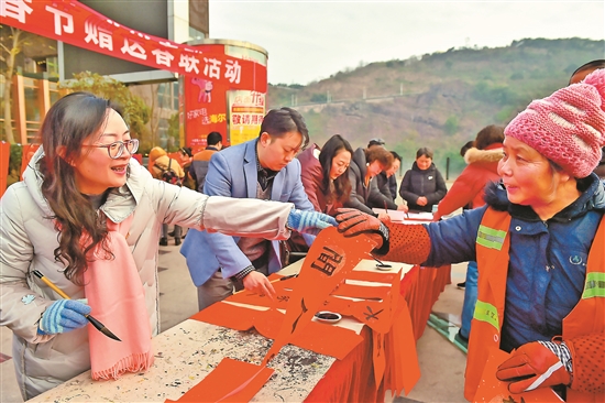 本报讯(通讯员 狄廷秀) 近日,水富市文联联合水富云天化职工书画协会书画班在水富万里长江第一港广场举办2019年春节送春联活动。