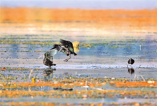 图为在蒙自长桥海拍摄到的彩鹮。 本报通讯员 徐刚 摄