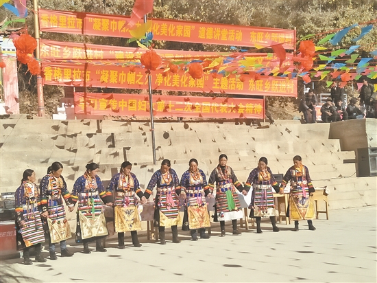 本报讯(记者 张帆)近日,由迪庆藏族自治州文明办、州妇联联合组织的“凝聚巾帼之力·净化美化家园”主题道德讲堂活动在全州20个村委会集中展开。 据了解,活动以“家干净、村整洁、乡风好、生活美”“建设美丽家园创造幸福生活”“人人动手净化美化家园”为主要内容,以家庭为切入点,以妇女为主体,深入开展“三个一”(即一场“迪庆精神”宣讲活动、一场文艺汇演活动、一次内务整治培训)活动,通过以点带面的形式在全州广大农村中推广,形成合力,团结动员广大妇女群众树立文明乡风、弘扬家庭美德,积极参与脱贫攻坚,争当脱贫攻坚的贡献者、家庭文明的引领者、美丽乡村的建设者,以实际行动助力脱贫攻坚,为打赢脱贫攻坚战贡献巾帼力量,为迪庆建设全国“最美藏区”发挥巾帼力量。 “凝聚巾帼之力·净化美化家园”主题道德讲堂系列活动,把妇女的思想政治引领作为工作主线,团结带领广大妇女听党话、跟党走。邀请州委“迪庆精神”宣讲团成员走进20个村社区进行宣讲,讲一堂“迪庆精神”讲座。迪庆州妇联班子面对面、零距离与广大妇女进行交流,用群众能接受、听得懂的语言宣讲中国妇女第十二次全国代表大会精神,推动大会精神进基层、进群众。各级妇联干部认真学习政策、主动研究政策,然后给妇女讲明白讲透彻,引导广大妇女不等不靠,树立脱贫信心,主动参与脱贫,做脱贫攻坚的明白人。