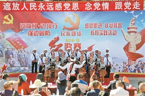本报讯(记者 管毓树) 冬日暖阳照边疆,唱响红歌扬正气。日前,芒市遮放镇“党旗红·边境行”强边固防、“感恩思进·扶贫扶智”教育实践活动暨民族团结红歌赛活动在邦达村委会举行。