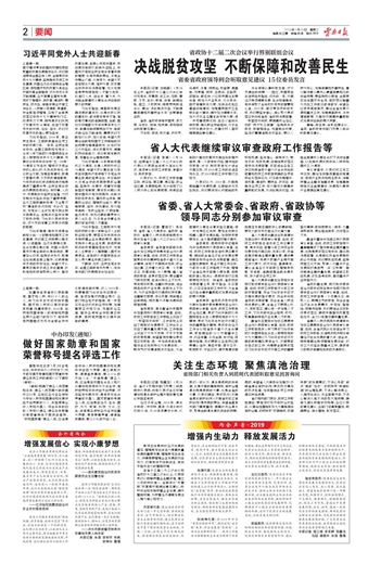 本报讯(记者 瞿姝宁) 连日来,省委、省人大常委会、省政府、省政协、省高级人民法院领导同志分别参加省十三届人大二次会议代表团审议审查。 省委常委、省委宣传部部长赵金参加红河哈尼族彝族自治州代表团审议审查。他说,政府工作报告全面贯彻中央精神和省委十届六次全会精神,体现了云南特点优势,政治站位高、工作着力点实,是一个求真务实、改革创新、令人鼓舞、催人奋进的报告。在贯彻落实中,要注重学习研究政策,在消化转化上下功夫,用足用好政策;注重科技创新,结合特色优势产业发展,在研发上下功夫,为产业转型升级提供科技支撑;注重解放思想、深化改革,用新理念出新思路,用改革办法解决遇到的困难问题。 省委常委、常务副省长宗国英参加普洱市代表团审议审查。他说,政府工作报告在工作思路上突出了“一张蓝图干到底”,工作目标上突出了跨越式发展要求,工作任务上突出了高质量发展方向,工作导向上突出了大干大支持、不干不支持的政策氛围。希望普洱市围绕贯彻落实好报告,进一步加快绿色发展,推动生态优势转化为发展优势;一鼓作气打好精准脱贫攻坚战,为全面建成小康社会奠定坚实基础;进一步发挥区位优势,更加主动服务和融入国家发展战略;加快转变思想观念,全力推进营商环境大提升。 省委常委、昆明市委书记程连元参加昆明市代表团审议审查。他说,政府工作报告总结成绩实事求是,提出的全省经济社会发展主要预期目标符合中央决策部署、顺应全国发展趋势、契合云南工作实际,为做好今年工作指明了方向,增强了全省各族干部群众谋发展、促跨越的信心和决心。昆明市将切实把思想和行动统一到省委、省政府的决策部署上来,敢于担当、务实苦干,以实实在在的工作成效,为全省经济社会高质量跨越式发展作出新的更大贡献。 省委常委、省委政法委书记张太原参加德宏傣族景颇族自治州代表团审议审查。他说,政府工作报告政治站位高,贯彻习近平新时代中国特色社会主义思想和党的十九大精神,贯彻习近平总书记对云南工作的重要指示精神,贯彻中央经济工作会议和省委十届六次全会精神。报告提出的10个方面重点工作,内容丰富、系统全面,针对性、可操作性强。我们要联系各自岗位职责精心组织、周密安排,苦干实干、敢闯敢干、干出实效。德宏是建设面向南亚东南亚辐射中心的最前哨,要努力做好开放型经济这篇文章。 省人大常委会副主任杨保建参加保山市代表团审议审查。他说,政府工作报告总结去年工作实事求是、亮点突出,部署今年工作符合中央要求和云南实际。去年以来,我省在推动制造业高质量发展、建设最美丽省份、布局大数据产业等方面工作力度大、成效突出,值得肯定。建议全省各级干部职工增强危机感、紧迫感,准确把握当前发展形势,努力做好各项工作。 省人大常委会副主任李培参加西双版纳傣族自治州代表团审议审查。他说,政府工作报告对今年工作的安排部署,符合习近平总书记对云南发展的指示要求,符合中央和省委的决策部署,符合全省人民加快发展的心愿,全省上下要同心协力,狠抓落实。建议进一步加强人才工作,下功夫研究出台培养、吸引、聚集高新特色产业发展人才政策。 副省长王显刚参加怒江傈僳族自治州代表团审议审查。他说,政府工作报告把深入学习贯彻习近平新时代中国特色社会主义思想和党的十九大精神以及习近平总书记对云南的殷殷嘱托贯穿全文。云南要做好自己的工作,关键要全面贯彻落实习近平总书记对云南工作的重要指示精神,做到思想统一起来、力量凝聚起来、责任担当起来、行动落实下去。 副省长董华参加丽江市代表团审议审查。他说,政府工作报告用大量篇幅阐述了推动制造业高质量发展,这既是贯彻落实党中央、国务院决策部署,也是顺应我省发展趋势的必然选择,我们要抓住机遇,坚持两型三化方向,聚焦八大重点产业发展和打造世界一流“三张牌”,推动制造业高质量发展。希望丽江抓住机遇,依托自身优势,推动重点产业转型升级。 省政协副主席、西双版纳傣族自治州委书记陈玉侯参加西双版纳傣族自治州代表团审议审查。他说,政府工作报告是一个求真务实、凝聚人心、鼓舞士气的报告,符合全省经济社会发展需求,宏观性、指导性、可操作性强。我们要结合实际抓好贯彻落实,蹄疾步稳推动改革落地见效,全力以赴推动高质量发展。 省高级人民法院院长侯建军参加怒江傈僳族自治州代表团审议审查。他说,全省法院系统将结合学习政府工作报告,找准司法机关服务保障经济社会发展的着力点、结合点,特别是围绕持续增强发展动能、打好三大攻坚战等重点工作,提供有力的司法保障和优质的法律服务。