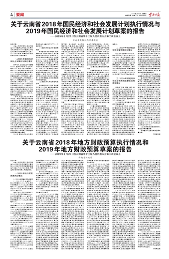 受省人民政府委托,现将云南省2018年国民经济和社会发展计划执行情况与2019年国民经济和社会发展计划草案提请省十三届人大二次会议审查,并请省政协委员和其他列席人员提出意见。