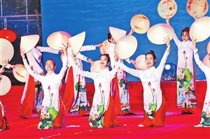 本报讯(记者 李树芬 通讯员 李娅蓉 王俪瑾) 1月31日晚,河口瑶族自治县北山明珠广场上,第三届中越跨国春节联欢晚会精彩上演,可容纳1500余人的场地座无虚席,掌声和欢呼声一阵高过一阵。 随着鼓锣声,热闹欢腾的《闹新春》拉开了晚会帷幕。舞蹈《欢腾红河》《老街—边疆城市》《丝路之约》展现了河口和越南老街人民追求幸福生活的美好愿景;古典舞《书简墨染》、舞龙表演《龙腾祥瑞》等中国风节目一一展现了我国源远流长的传统文化;越南传统服饰奥黛表演《越南我的家乡》让观众眼前一亮;此外,还有器乐演奏、原生态民族舞蹈等节目精彩上演。最后,演出在《中越歌曲联唱》中落下帷幕。