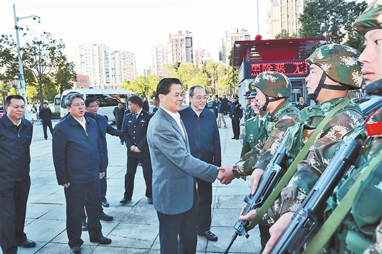 本报讯(记者 田静 杨猛) 2月3日上午,省委书记陈豪、省长阮成发率队在昆明市实地检查节日期间治安防控和消防安全工作,视频连线了解边境地区值守情况,要求认真学习贯彻习近平总书记视察看望北京卫戍区、北京市公安局时的重要讲话精神,忠诚履行职责,严格值班值守,确保春节期间全省社会稳定,确保人民群众平平安安过好年。 在武警云南省总队执勤支队执勤一中队,生龙活虎的战士们正在开展体能、格斗等训练。陈豪、阮成发和战士们一一握手,向大家送上新春祝福,关切询问生活保障等情况,希望大家平时加强训练、战时能打胜仗,全面提高安全保卫能力。要求部队领导合理安排训练和休息,让远离家乡和亲人的战士们度过一个欢乐、祥和、平安的春节。 陈豪、阮成发一行来到昆明市公安局爱琴海执勤点看望慰问一线执勤人员,详细了解节日期间治安防控工作部署、治安警务亭自助警务服务、警用装备配置等情况。“城市的安全稳定永远要靠你们守护。有你们城市就安全了、社会就稳定了、老百姓就放心了。”陈豪、阮成发向广大公安干警表示敬意,希望大家在新的一年里再创佳绩,保护好一方平安。 “万家团圆时,大家还要坚守岗位,感谢大家为人民的付出、为城市安全的付出。”陈豪、阮成发一行来到昆明市消防支队西山大队,向广大消防队员致以新春的问候。不久前刚换上“火焰蓝”制服的干部战士,正在抓紧训练、部署春节消防工作。陈豪、阮成发关切询问消防救援队伍转隶后的情况,要求切实做好保障工作,确保队伍稳定,始终担负好消防安全、应急救援的重要职责。 “报告,拉勐通道一切正常。”“请首长放心,我们改制不改初心、换装不换职责。”在云南出入境边防检查总站指挥中心,德宏瑞丽出入境边防检查站拉线分站执勤干警、西双版纳边境管理支队兴海查缉点执勤官兵通过视频连线分别汇报了工作值守和边境地区节日治安情况。陈豪、阮成发代表省委、省政府向守卫在边境一线的同志们致以节日的慰问和崇高的敬意,希望广大边防干警在转隶换装后,继续发扬光荣传统,保持优良作风,不忘初心、牢记使命,忠诚履行职责,守护好边境安全。 程连元、刘慧晏、张太原、任军号、高道权、杨杰等参加检查慰问活动。