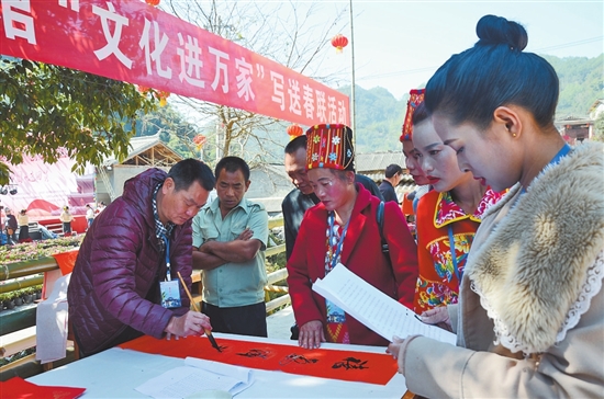 近日,2019“相约芒市·暖冬迎春”回贤第二届红红火火过大年活动,在德宏傣族景颇族自治州芒市镇回贤古寨举行。当天,活动现场进行了精彩的歌舞表演,还举行送春联、送福字、现场写生、书画展等活动,营造了和谐幸福安康的节日氛围。