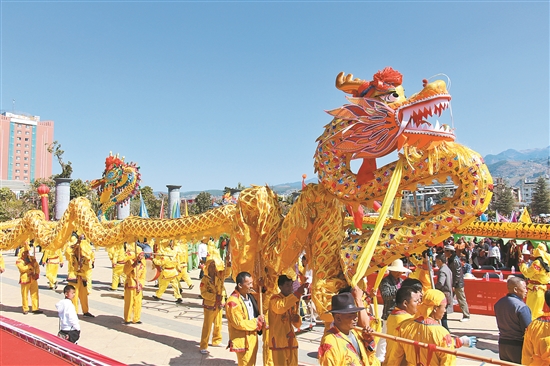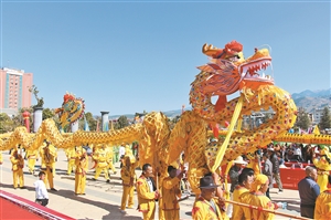 近日,来自施甸县仁和镇和甸阳镇的5条长龙、9条小滚龙和6架狮子齐聚县城闹新春。施甸素有“龙狮之乡”的美誉,每到农历正月,施甸县群众就自发组织开展舞龙舞狮活动。本报通讯员 郭金灿 记者 李继洪 摄