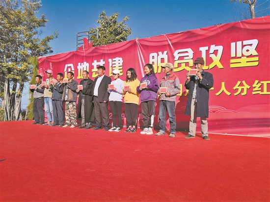 近日,南涧彝族自治县小湾东镇群民农业开发专业合作社为1404户贫困户分红278.41万元。去年,该合作社每天带动村民务工580多人,增加群众收入1700多万元。小湾东镇在脱贫攻坚中以“党支部+合作社+贫困户”模式,实现了“村有产业,家有就业,户有分红”。