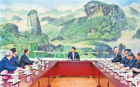 新华社北京2月15日电(记者 李忠发) 国家主席习近平15日在人民大会堂会见来华进行新一轮中美经贸高级别磋商的美国贸易代表莱特希泽和财政部长姆努钦。 习近平指出,中美关系是当今世界最重要的双边关系之一。两国在维护世界和平稳定、促进全球发展繁荣方面拥有广泛共同利益、肩负着重要责任。保持中美关系健康稳定发展,符合两国人民根本利益,也是国际社会普遍期待。去年12月,我和特朗普总统在阿根廷会晤,达成重要共识,两国要共同推进以协调、合作、稳定为基调的中美关系。希望双方团队按照我同特朗普总统确定的原则和方向,加强沟通、聚焦合作、管控分歧,推动中美经贸合作和两国关系健康稳定向前发展。 习近平指出,去年12月以来,两国经贸团队开展了密集和有益的磋商。我多次讲过,中美两国谁也离不开谁,合则两利,斗则俱伤,合作是最好的选择。对于双方经贸分歧和摩擦问题,我们愿意采取合作的方式加以解决,推动达成双方都能接受的协议。当然,合作是有原则的。这两天,世界的目光聚焦在北京。双方团队的磋商又取得了重要阶段性进展。下周,双方还将在华盛顿见面,希望你们再接再厉,推动达成互利双赢的协议。 莱特希泽和姆努钦转达特朗普总统对习近平主席的亲切问候和良好祝愿。他们表示,美中贸易关系非常重要。特朗普总统和习近平主席在阿根廷举行重要会晤后,两国经贸团队抓紧落实两国元首共识,在此前磋商的基础上,过去两天里就双方共同关心的经贸问题进行了深入讨论,在重要和困难的问题上取得了新的进展。虽然还有许多工作要做,但我们抱有希望。下阶段,美方团队愿同中方团队一道,密切沟通、抓紧工作,争取达成符合双方利益的协议。特朗普总统十分敬重习近平主席,期待着同习近平主席保持密切沟通。 习近平请莱特希泽和姆努钦转达对特朗普总统的诚挚问候。习近平表示非常珍视同特朗普总统的良好工作关系,愿同他通过各种方式保持联系。 刘鹤、王毅等参加会见。