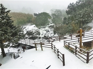 本报讯(记者 李吒 韩成圆) 2月17日下午,昆明主城区艳阳高照,而在距主城区100多公里外的昆明轿子雪山风景区,下起了今年入春的第一场雪。千余名游客在银装素裹的冰雪世界里,尽情踏雪观景、拍照留念。 “运气太好啦!刚登上山顶就开始飘雪,必须把这难得的美景‘安排’进我的朋友圈!” 看着飘落掌心的片片雪花,来自广西南宁的张女士已经迫不及待地想要和更多人分享这份喜悦。张女士说,此行来昆明是为了参加同学的婚礼。乘上高铁从连日细雨绵绵的南宁一路到艳阳高照的昆明,自己的心情也变得明朗轻快起来。“没想到在昆明还可以同时体验到暖阳花开和雪花飞舞,这真是此行最大的惊喜。”