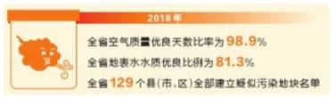 本报讯(记者 胡晓蓉) 记者从日前召开的省环境污染防治工作领导小组第二次专题会议上了解到,2018年,在省委、省政府高度重视下,全省污染防治工作全面推进,蓝天、碧水、净土三大保卫战取得显著成效。 2018年,全省大气环境质量持续保持优良,空气质量优良天数比率为98.9%,比上年提升0.7个百分点,连续两年位居全国第一。我省还先于全国全面供应符合国Ⅵ(B)标准的车用汽油、国Ⅵ标准车用柴油。比国家要求全面使用国Ⅵ(B)标准汽油要求提前4年完成。同时,治理淘汰黄标车147640辆,全省黄标车全部淘汰。 随着碧水保卫战的推进,全省水环境质量稳步提升。2018年,全省地表水水质优良比例为81.3%,比上年提高0.8个百分点;26个出境、跨界河流监测断面均达到水环境功能要求。较好完成国家《水十条》考核目标任务。九大高原湖泊水质趋稳向好,抚仙湖、泸沽湖符合Ⅰ类标准,水质良好;阳宗海、洱海符合Ⅲ类标准,水质良好;滇池草海、滇池外海、程海(氟化物、pH除外)符合Ⅳ类标准,水质轻度污染,滇池水质较上年提升,为30余年来最好。全省州市级城市46个饮用水水源取水点水质均满足饮用水源功能(Ⅲ类)的要求,达标率100%;全省179个县级城镇集中式饮用水源地取水点水质满足Ⅲ类水质要求的有177个,占98.9%。 随着净土保卫战的统筹推进,全省土壤环境质量总体稳定。2018年未发生因耕地土壤污染导致农产品超标的事件,未发生因疑似污染地块或污染地块再开发利用不当造成不良社会影响的事件。在《土十条》各项重点工作任务稳步推进的同时,我省建立了疑似污染地块名单和污染地块名录,全省129个县(市、区)全部建立疑似污染地块名单,16个州(市)全部建立污染地块名录。目前,全省30%产粮(油)大县(市)制定印发土壤环境保护方案并实施。截至目前,我省已完成2个土壤污染治理与修复试点项目,另有13个项目正在稳步推进。