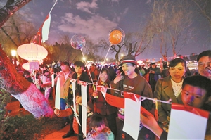 2月19日是元宵节,我省各地举行丰富多彩的欢庆元宵佳节活动,猜灯谜、耍龙灯、踩高跷、舞狮子、吃元宵……一派喜气祥和的节日景象。这是昆明大观公园内举办的“万条灯谜乐元宵”活动,吸引众多市民前来庆佳节,闹元宵。本报记者 陈飞 摄