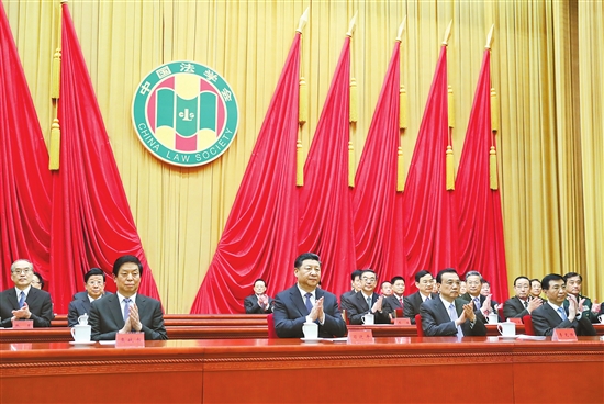 新华社北京3月19日电 中国法学会第八次全国会员代表大会19日上午在人民大会堂开幕。习近平、李克强、栗战书、王沪宁等党和国家领导人到会祝贺。 中共中央政治局委员、中央政法委书记郭声琨受党中央委托,发表了题为《在全面依法治国新征程中实现新担当新作为》的致词。郭声琨首先向大会的召开表示热烈祝贺,向全国广大法学法律工作者致以诚挚问候。 郭声琨在致词中说,党的十八大以来,党中央将全面依法治国纳入“四个全面”战略布局,加强党对全面依法治国的集中统一领导,统筹推进科学立法、严格执法、公正司法、全民守法,法治中国建设取得了历史性成就,社会主义法治稳步迈向良法善治新境界。各级法学会团结带领广大法学法律工作者建功立业,为社会主义法治国家建设作出了重要贡献。 郭声琨表示,希望广大法学法律工作者坚持以习近平新时代中国特色社会主义思想为指导,增强“四个意识”、坚定“四个自信”、做到“两个维护”,自觉做中国特色社会主义法治道路的践行者、社会主义法治国家的建设者、中国特色社会主义法治理论的发展者、德才兼备的社会主义法治人才的培养者,在波澜壮阔的时代进程中书写华章。 丁薛祥、王晨、陈希、赵克志、周强、张军、汪永清出席开幕式。 第七届中国法学会会长王乐泉主持会议,并代表第七届理事会作工作报告。 这次大会的主要任务是,坚持以习近平新时代中国特色社会主义思想和党的十九大精神为指导,总结中国法学会过去五年工作,研究部署今后五年工作,选举产生中国法学会新一届理事会和领导机构。 中央政法委委员,中央和国家机关有关部门负责同志,中国法学会第八次全国会员代表大会全体代表、特邀代表参加了开幕式。