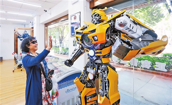 3月22日,由云南宝凯科技有限公司开发的机器人值守无人超市在昆明市西山区西园路亮相,200平方米的超市内有两个变形金刚机器人24小时值守,超市商品补货和后台管理则只需一名工作人员就可完成。目前,该公司已在省内开设了5家门店,其中昆明开设了2家门店。本报记者 杨峥 摄