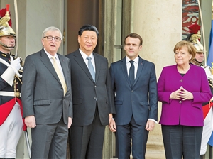 新华社巴黎3月26日电(记者 骆珺 蒋国鹏) 国家主席习近平26日在巴黎同出席中法全球治理论坛闭幕式的法国总统马克龙、德国总理默克尔和欧盟委员会主席容克举行会晤。 习近平指出,当前国际形势中不稳定不确定因素突出,保护主义抬头。中方愿同各方一道,坚定维护多边主义,推进完善全球治理,共同应对全球性挑战。 习近平强调,中国和欧洲是国际上两大重要力量,是世界多极化、经济全球化进程的重要参与者和塑造者,拥有广泛共同利益。中欧要从3个方面携手努力。 一是共同维护多边主义。我们要维护联合国的地位和权威,维护以联合国为核心的国际体系。中方愿同欧方加强在联合国框架内的交流合作,在推动政治解决国际争端、应对气候变化、促进可持续发展等方面积极有所作为。 二是促进亚欧大陆繁荣发展。中方愿继续推动共建“一带一路”倡议同欧盟“欧亚互联互通战略”对接,既推动双边合作,又推动第三方市场合作,实现各方互利共赢。 三是增进双方战略互信。中国一向视欧盟为战略合作伙伴,支持欧盟团结、稳定、繁荣。中欧共同利益远多于分歧,双方应带头高举和平发展、合作共赢的大旗,做大合作蛋糕。中方愿同欧洲国家一道促进中欧关系发展。 马克龙表示,此次会晤向国际社会传递了欧盟与中国坚定捍卫多边主义的积极信号。法中两国也签订了关于共同维护多边主义和完善全球治理的联合声明,充分彰显双方合作的战略性。法国和欧盟愿同中国进一步加强互信,共同承担促进世界和平、安全、发展的历史性责任。 默克尔表示,当今世界面临许多和平与发展难题。中国成功使几亿人脱贫,取得了巨大成就。德方重视中国在国际事务中发挥的关键作用,高度评价中国支持欧洲繁荣,愿同中方一道推动多边主义进程。 容克表示,欧盟和中国是合作伙伴,欧中合作可以在世界上做成大事。欧方愿同中方加快合作步伐,为共同应对全球性挑战发挥积极作用。 丁薛祥、杨洁篪、王毅、何立峰等参加上述活动。