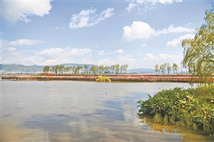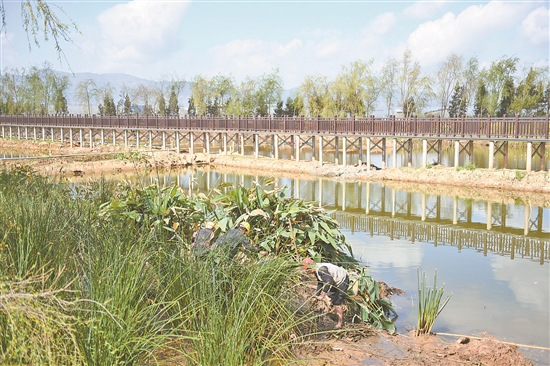 本报讯(记者 党晓培 通讯员 师云波)日前,记者在位于杞麓湖西岸的红旗河河口湿地修复工程建设现场看到,工作人员加紧进行水生植物移栽和科普宣教长廊建设等收尾工作,该工程预计于3月底完工并投入使用。 红旗河是杞麓湖最大的入湖河流,河口湿地修复工程是杞麓湖国家湿地公园(试点)建设内容之一,该工程计划投资6618.14万元,通过项目建设,可恢复前置湿地净化功能,减少入湖污染源,为保障湖泊生态的稳定性提供缓冲机制。 目前,工程已完成水生植物打捞、打桩、清淤、新建栈道塑木板铺砖、二级表流湿地吹填、中间广场铺设地砖等工作,3月底有望完工投入使用。与此同时,中河、者湾河、大新河等河口湿地修复以及南岸湖堤生态修复、东北岸湖滨带生态修复、恢复重建区鸟类栖息地生态岛生态修复、杞麓湖一级保护区生态修复与生态屏障构建等工程正在快速推进中。 依据《云南通海杞麓湖国家湿地公园总体规划》,湿地公园工程主要通过实施生态保育区、恢复重建区、宣教展示区、合理利用区、管理服务区五大功能分区建设,以及完善环保、水利等相关配套项目,使杞麓湖国家湿地公园成为集湿地保护、科普宣教、旅游观光和生态文化体验为一体的重要基地。
