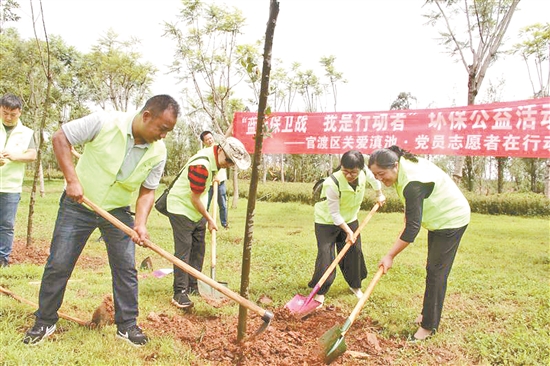 本报讯(记者 刘凤 茶志福 通讯员 王正鹏)近日,官渡区委“两新”组织工委到环滇党建示范带海东湿地公园开展官渡区“两新”组织党组织联合主题党日暨“蓝天保卫战,我是行动者”环保公益活动,并成立了昆明市首个河道生态治理“两新”组织党员志愿服务队。 活动前,参加活动的全体60名党员举起右手,面向党旗庄严宣誓。随后,昆明中电环保有限公司党总支负责人向大家分享了垃圾发电原理,倡议大家带头推进垃圾分类处理。党员代表们还观看了滇池治理宣传片,并到“党员先锋林”参加植树活动。 “我们号召每一名党员都身体力行,自觉成为环境保护的宣传者、实践者、推动者。此次成立官渡区‘两新’组织河道生态治理党员志愿服务队,就是为了更好地开展‘关爱滇池,春城志愿者在行动’等志愿服务活动。”官渡区委“两新”组织工委有关负责人介绍,官渡区将继续深化基层党建与河长制“双提升”工作,示范带动全区“两新”组织党组织和党员积极投身河道治理工作,实现滇池治理与社会治理“双提升”,助力形成滇池保护治理的强大合力。
