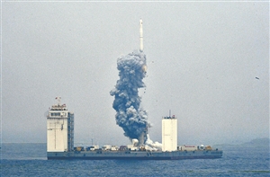 2019年6月5日12时6分,我国在黄海海域用长征十一号海射运载火箭,将技术试验卫星捕风一号A、B星及五颗商业卫星顺利送入预定轨道,试验取得成功。这是我国首次在海上实施运载火箭发射技术试验。 新华社发