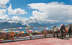 德钦县境内的梅里雪山群峰绵延,全长150公里,海拔6740米的卡瓦格博峰是云南省最高的山峰。梅里雪山属三江并流世界自然遗产地和国家级风景名胜区,以巍峨壮丽、神秘圣洁闻名于世,大批中外游客慕名前来观光。本报记者 杨峥 摄