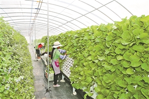 临翔区蚂蚁堆乡蚂蚁堆村驿亭新村易地扶贫搬迁安置点于2017年启动建设,安置周边14个村170户618人。为实现易地搬迁农户搬得出、稳得住、能致富的目标,上海市崇明区投入帮扶资金250万元发展现代农业,建成面积4100平方米的温室蔬菜大棚,帮助易地扶贫搬迁户就近就地就业。本报记者 张彤 摄