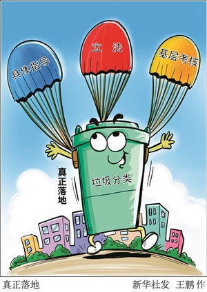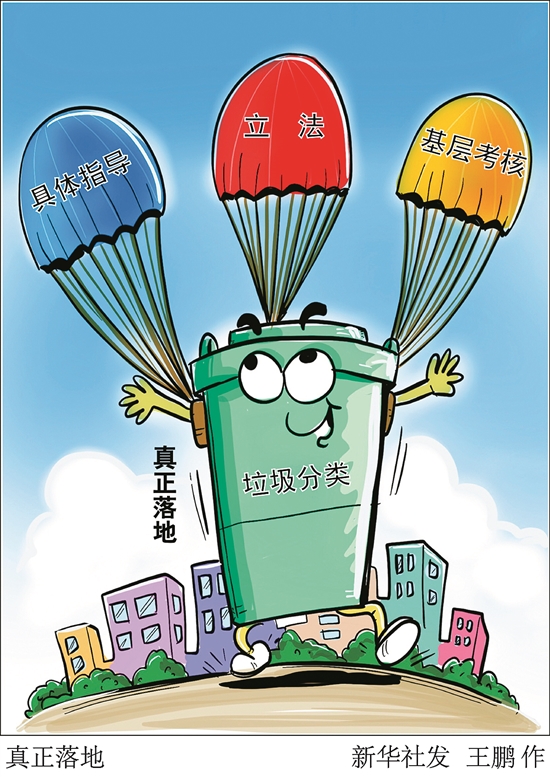 7月1日起,《上海市生活垃圾管理条例》正式实施。住建部日前介绍,46个城市将先行实施生活垃圾强制分类。根据《城市生活垃圾分类工作考核暂行办法》,由住建部负责每季度对城市生活垃圾分类工作进行考核。此外,为落实细则,多地开始对基层干部进行考核与问责。 “新华视点”记者调查发现,推行多年的垃圾分类开始真正落地。新华社发 王鹏 作