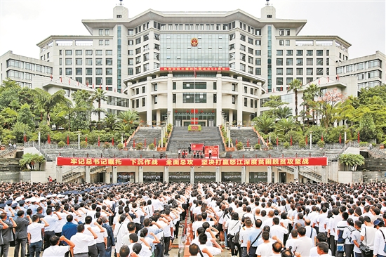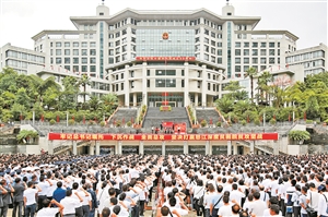 7月1日上午,怒江傈僳族自治州六库同心广场红旗飘扬、鲜花争妍。全州各单位干部职工3100余人齐聚一堂,举行“升国旗、唱国歌”活动,共庆中国共产党建党98周年。本报记者 李寿华 通讯员 陆娉婷 摄