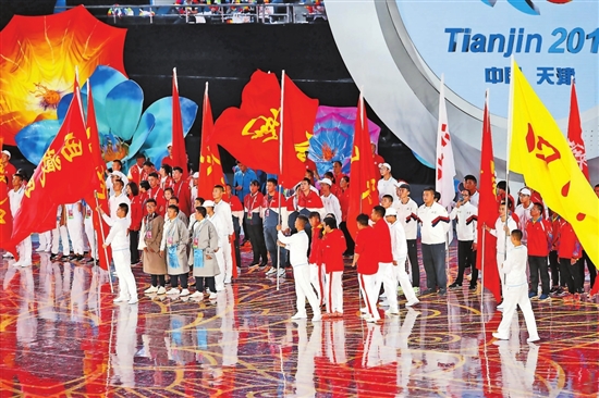 本报天津9月1日电(记者 方学良) 第十届全国残运会暨第七届特奥会当天上午排定了轮椅篮球的最后名次,云南女子轮椅篮球以51:23战胜广西队获得季军。至此本届运动会全部20项比赛宣告结束。经过7个比赛日的争夺,云南代表团最终获得了51枚金牌、45枚银牌、37.5枚铜牌,虽然奖牌数比上届有所减少,但在参赛的35个代表团中依然位列中上游,超额完成了预定的参赛目标任务。 在本届全国残运会暨特奥会各项比赛中,共67人次超35项世界纪录,253人次破124项全国纪录,是一届精彩激烈高水平的残疾人运动会。自从1984年首届全国残运会举办以来,云南残疾人代表团成绩一直位列全国前茅,对于一个地处西南边疆、经济欠发达、脱贫任务艰巨的省份来说殊为不易。特别是在2007年成功举办第七届全国残运会暨第四届特奥会之后,在省委、省政府关心重视和各州市共同努力下,云南的残疾人体育事业进入快速发展时期,尤其是在游泳和田径项目上人才辈出,长期保持着较高水平,成为我省在历届全国残运会上取得优异成绩的根本保证。但是近年来随着其他省区市残疾人体育运动水平的迅速提高,加上我省各残疾人运动队纷纷进入更新换代阶段,云南代表团传统优势项目受到冲击,集体项目缺乏高水平团队、参赛项目布局不合理,整体参赛面过窄等问题开始显现,本届全国残运会暨特奥会新增了冬季项目,又对部分项目设置和医学分级进行了调整,打破了原有的平衡格局,所以云南代表团确定了低调务实的参赛目标。经过代表团上下和全体教练员运动员的共同努力,最终取得了金牌榜和奖牌榜均跻身全国前十名的好成绩。 全国运动会和全国残运会暨特奥会在天津首次实现了同城但不同期举办,2021年第十四届全国运动会、第十一届全国残运会暨第八届特奥会将在陕西西安实现同城同期举办。 图为云南代表团出场。 本报记者 李秋明 摄