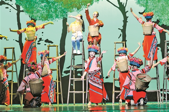 本报讯(记者 侯婷婷 周灿) 9月2日晚,第十五届云南省新剧目展演舞剧《腊·景迈》在云艺实验剧场上演,舞剧呈现了40年来景迈山时代的变迁,以及新老两代景迈人情感交织的故事,收获观众掌声无数。 舞剧《腊·景迈》以古茶林为背景,以古茶林的守护者——景迈山的世居民族之一的布朗族茶生活为题材,表现了伴茶而生的景迈山世居族群的精神信仰及文化创造。该剧以改革开放初期深入景迈山采风,进行田野调查的民族学女教授40年后重返景迈山的事件为引,讲述时代变迁中新老两代景迈人情感交织的故事,将景迈山居民对景迈古茶树的敬仰,对古茶树的守护,对古茶林的尊崇,对古茶饼的传承,对家园的热爱传达给观众,让观众更深入了解普洱景迈,感受其所孕育的民族文化与智慧,更进一步唤起人们对非物质文化遗产及自然环境的保护意识。 《腊·景迈》由普洱市民族歌舞团有限责任公司创编。普洱市民族歌舞团积累了一批独具普洱民族特色的经典剧目,多次赴国内外演出,为传播中华民族优秀文化作出了积极的贡献。