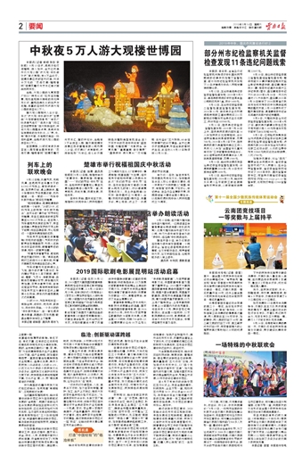 本报讯(记者 熊明 张彤 李秋明) 9月13日夜,昆明多地灯海璀璨,游人如织。全方位改造升级大观公园“夜大观·中秋奇妙夜”首次亮相;有8万盏彩灯,世博风景区历时百天打造,斥资千万元的 “花海灯潮·璀璨春城”世博花雕灯光艺术汇首次面向市民开放。 当晚,大观公园的九夏芙蓉广场以“拜月仪式”拉开活动帷幕,现场呈现原汁原味的传统拜月仪式,重现古典礼仪的庄严与优雅,丰富的活动吸引夜游大观公园的游客近2万人。 据大观公园相关人士介绍,本次“夜大观·中秋奇妙夜”主要由“大观楼建筑投影秀”“爱恋广场浪漫气泡灯”“海浪沙滩”“网红互动钢琴投影”四大板块组成,并将大观公园整体点亮,其间点缀饶有趣味的发光秋千,从“声、光、电”等多方面、多维度打造出一场视听盛宴。当晚夜游大观公园的游客近2万人。 在世博园,21时还有很多游客在入园观看全国独有的 “花海灯潮·璀璨春城”世博花雕灯光艺术汇。据初步统计,当晚有3万余游客入园。据云南世博旅游景区投资管理有限公司负责人介绍,该灯展以“点亮春城,夜游新地标”为定位,将七彩云南特色与植物造型有机结合,在3万平方米的花海中共设有“盛世中国 光耀世博”“光影民俗 华夏风情”“童真童趣 亲子情愫”“国泰民安 伟大复兴”“灯光璀璨 流光溢彩”五大板块,60余组构思精巧的彩灯精品,全方位展示夜世博盛宴,开启全新的春城夜生活。此活动从9月13日持续到12月31日。