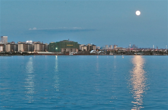 9月13日,中秋佳节之夜,昆明迎来晴好天气。19时10分,一轮明月从滇池东岸升起,随着夜幕的降临,皓月当空、月影在水,呈现出“海上生明月 天涯共此时”的美景。本报记者 杨峥 张彤 摄
