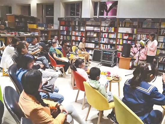 9月12日晚,在云南大理州新华书店大理书城,一位朗读者正伴着背景音乐朗读诗歌《中秋的月亮》。这是大理州新华书店下关分公司,专门为读书爱好者举办的“讲中秋,话经典”中秋朗读活动。据组织者介绍,举办这样的活动是为读书爱好者搭建一个朗读平台,旨在让读者用朗读传达情感,让文学感动自己,用声音感动大家,让文学回归生活,让越来越多的人爱上读书。通讯员 叶利民 摄影报道