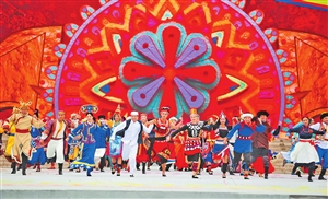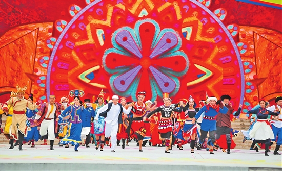 金秋送爽,黄河叠浪,日前,轩辕故里一片节日欢腾。来自全国34个代表团、56个民族的近万名运动员欢聚黄河岸边,中原大鼓回荡在山谷,酒樽还在碰撞,山歌依然清亮,只是狂欢的人儿醉了,雀跃的心儿醉了,各民族一家亲的情儿溢满了。 郑州市黄河风景游览区民族大联欢的会场沉浸在一片节日的欢歌里,迎宾的民族队伍站满了大路的两旁。穿行其中,犹如穿越到几千年之外,演员们身着夏朝服饰,金鼓迎客、竹书传福,浓浓中原炎黄文化风扑面袭来。 国家民委党组成员、副主任,第十一届全国少数民族传统体育运动会组委会副主席郭卫平宣布民族大联欢活动开始。作为全国少数民族传统体育运动会的重要活动之一,本届运动会民族大联欢着力突出铸牢中华民族共同体意识这一鲜明主题,见证全国各民族同胞在中原大地齐舞欢歌、联欢互动的盛况。 现场56名5到6岁的小朋友,身着56套红色基调的各民族服装,在舞台上深情唱起《石榴红了》,象征着各民族像石榴籽一样紧紧抱在一起,表达着56个民族团结情谊代代相传、生生不息的深厚内涵。 造型古朴的泥咕咕、奇巧瑰丽的唐三彩、灵动逼真的皮影戏、青素典雅的汝瓷、特色鲜明的年画、栩栩如生的面塑……100多位河南非物质文化遗产项目传承人带着54项非遗项目精彩亮相,尽展中原传统文化魅力。中原盘鼓、舞龙、舞狮让运动员们亲身体验了中原非遗社火的独特魅力。 民族大联欢给了我们每一个人大口吃肉、大碗喝酒、大声唱歌、大步跳舞的机会,在这里,各民族间没有了地域上的不同,大家手牵手,心连心,民族大团结的盛况永存! 本报记者 娄莹 本报郑州专电