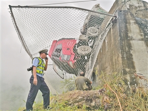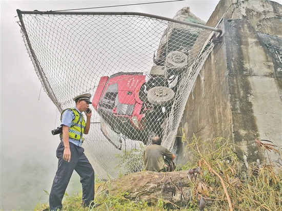 本报记者 党晓培 “别看它其貌不扬,可救了5个人的命。”近日,记者来到玉溪市元江哈尼族彝族傣族自治县大风垭口,在民警胡锦文的带领下,见到了这个“网红”大网兜。这个大网兜位于昆磨高速公路玉溪段元江县2公里长下坡k229+500米的自救匝道内,网兜下就是100多米深的悬崖。 巍巍哀牢山中,镶嵌着被称为昆曼国际大通道咽喉要道的昆磨高速玉溪段,当中的大风垭口27公里长下坡路段,坡顶与坡底海拔落差达1100米。特殊的地理特征造就了该路段坡长、弯多,桥密、隧长的典型山岭高速特点。罕见的道路环境,加上经常出现能见度不足100米的浓雾天气,使得行经这里的重载货车极易发生失控、起火等事故,且连环追尾事故风险极高。 救命的大网兜 “这张照片记录了当时大网兜救命的事实。”在玉溪市交警大风垭口中队,胡锦文向记者讲述了这样一起事故,“2018年7月26日,一辆大货车失控冲进自救匝道,车头冲出挡墙,挂在100多米高的悬崖上。幸运的是,车上两人虽然掉出驾驶室,但掉落在挡墙外的网兜里,一人轻伤,一人擦伤,均没有生命危险。” 此事件被多家媒体报道后,迅速刷爆朋友圈,网友们纷纷留言点赞,称这是“史上最牛”大网兜。 这个大网兜是大风垭口交警中队“发明”的,目的是在自救匝道不能延长的情况下,保护更多驾驶人的生命安全。 2015年,玉溪市公安局高速公路交警大队大队长许文平多次实地调查研究,深思熟虑后决定,在匝道外面修建一个大网兜,兜住那些飞出去的驾驶员或者车头,减少车毁人亡的事故率。 据了解,自2004年通车以来,昆磨高速大风垭口27公里长下坡路段已有约1100辆重载货车失控,300辆货车烧毁,造成123人死亡,在2007年以前,曾一度成为闻名全国的“死亡之坡”。因为大风垭口中队十三年如一日的坚守,27公里长下坡路段事故发生率逐年下降,2008年至2011年间,发生3至4人较大事故2起,比2007年之前4年间发生7起下降了71%;而2012年至今的7年间,该长下坡路段未再发生一次死亡3人以上较大事故,死亡人数也从10年前的每年20余人下降到近5年来的每年2至5人,其中,大网兜功不可没。 最唠叨的警察 “师傅,您好!我们是玉溪交警,前面是连续27公里长下坡,大货车因刹车失控已造成100多起死亡事故,请您加水检查刹车,休息10分钟后再上路,祝您一路平安!” 13年来,这句话执勤民警每天要对途经大风垭口的全国各地驾驶员重复数百次,他们是驾驶员耳旁最“唠叨”的警察,一些多次往返经过此地的驾驶员被交警感动,每次经过大风垭口,都会主动停靠向民警们停车问候。 除了句句叮咛,送“福”字也是大风垭口中队的又一创新提示措施。 13年以来,中队共提示全国各地重载货车160余万辆次,为民送“福”字贴100余万次,提高了外省籍驾驶员对长下坡的认知度和防控措施的知晓率,这对预防重特大道路交通事故的发生起到了关键性作用,大幅度降低了货车的失控率。 在执勤点,记者碰到了一名湖南籍的大货车驾驶员。细数一下,他的车上已经贴了10个新旧不同的“福”字贴。 “还要贴吗?”民警问道。 “必须的哦,10个‘福’字已经保了我10年的安全。10年来,在这条路上跑,我没有出过一次事故。是你们的细心提醒保证了我的平安,谢谢你们,你们辛苦了。”驾驶员说。 大风垭口交警中队目前有民警8人、协勤14人,成立于2006年,是省二级交通安全检查服务站。中队先后被评为“全国青年文明号”“全国优秀公安基层单位”,被省公安厅荣记“集体二等功”一次,2019年1月,被省委、省政府荣记“集体一等功”。