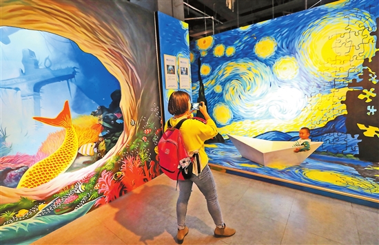 10月26日,昆明大悦城梵高星空艺术馆开馆。梵高星空艺术馆占地1000平方米,以荷兰画家梵高的艺术人生为主线,纯手工绘制完成60多个主题场景,并利用空间视错觉、光影特效等技术,营造出炫酷的4D场景,为春城市民带来新奇体验。本报记者 杨峥 摄