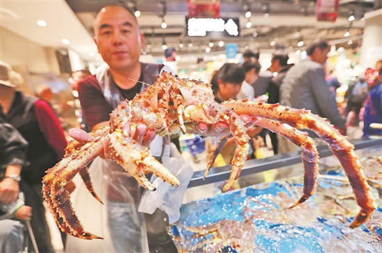 昆明大悦城盒马鲜生旗舰店是盒马云南第一大门店,也是盒马鲜生在西南地区的第二大门店,目前不仅销售上百个海鲜产品,而且还引入了包括桥香园、三块一拾、宜良烤鸭等在内的15家云南本土老品牌商家联营,实现线上线下的新零售转型。本报记者 杨峥 摄影报道