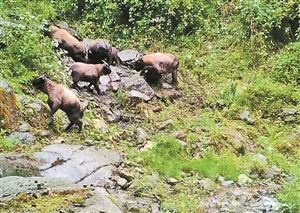 本报讯(记者 李寿华) 近日,云南高黎贡山国家级自然保护区泸水管护分局上江站和大南茂站利用野外红外相机,在该自然保护区泸水片区南段首次拍摄到了高黎贡羚牛影像资料。 11月初,泸水管护分局工作人员在收集整理安装在野外的红外相机时发现,泸水片区南段3个不同地点的4台红外相机同时拍摄到了羚牛的视频和图片。视频中,几头体型壮硕的高黎贡羚牛悠闲地在山坡上采食,它们的角向后弯曲,全身覆盖着棕黄色的毛,行动机警敏捷。这是泸水管护分局成立以来首次以视频、图片方式记录到高黎贡羚牛活动现状,弥补了该区域长期以来羚牛影像资料的空缺,对这一珍贵物种后续的保护与研究具有重要意义。 羚牛是国家一级保护动物,主要分布在云南高黎贡山和西藏墨脱一带海拔2000米到4000米的高山森林草甸上,体型硕大,喜群居,性情凶悍。目前,在高黎贡山分布的羚牛有1000头左右。