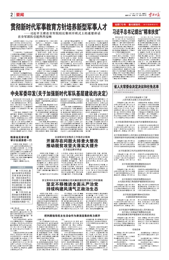 中央军委印发《关于加强新时代军队基层建设的决定》