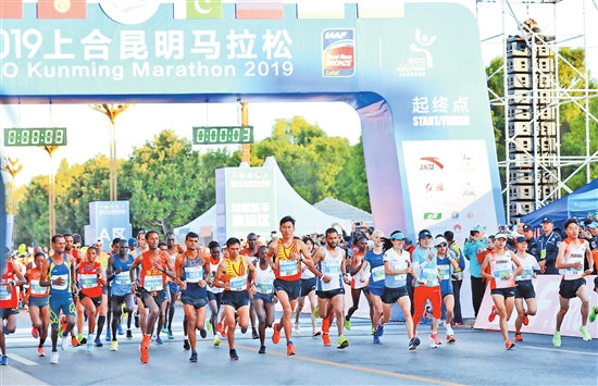 本报讯(记者 浦美玲 周灿) 阳光明媚,海鸥飞翔。12月1日上午,2019上合昆明马拉松鸣枪开跑。来自35个国家和地区的2万名选手在滇池之畔激情奔跑。