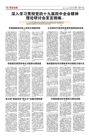 深入学习贯彻党的十九届四中全会精神理论研讨会发言摘编(上)