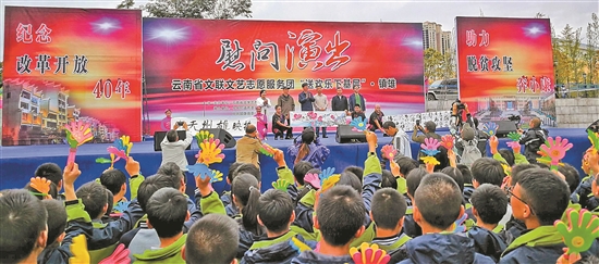 彩云之南,人们心目中多彩浪漫的诗与远方,承载文艺与梦想的热土,这里有着深厚的民族文化底蕴,更闪烁出风采卓异的文艺光芒。 紧跟时代步伐,谱写文艺新篇。近年来,伴随中国特色社会主义进入新时代,云南文艺新实践努力服务社会,服务人民。云南文学、电影、电视、戏剧、音乐、舞蹈、曲艺、杂技、美术、书法、摄影、民间文艺和文艺评论呈现百花齐放、生机勃勃的喜人景象,一批文艺精品力作在国际国内赢得荣誉,一批优秀文艺人才走向全国舞台,一批文艺活动品牌在全国产生影响,为加快云南民族文化强省建设作出新的贡献,为推动云南高质量跨越式发展提供强大的精神动力和文化支撑。 政治引领促发展担当时代新使命 2013年5月22日云南省文联第七次代表大会以来,全省文艺战线在省委、省政府坚强领导下,坚持“二为”方向、“双百”方针,坚持深入生活、扎根人民,坚持创造性转化、创新性发展,积极投身谱写中华民族伟大复兴中国梦云南篇章火热实践,大力推进文联及文艺家协会立足新的基本职能,不断推出文艺精品力作,成功举办系列文化文艺活动,广泛开展文化惠民利民服务,精心组织对外文化交流传播,奋力打造强大“文艺滇军”,聚焦构建云南文艺升级版,为开创云南文艺繁荣发展新局面、推进云南民族文化强省建设、助力云南高质量跨越式发展作出了重要贡献。 加强党对文艺工作思想政治引领。云南省文联始终坚持把学习贯彻习近平新时代中国特色社会主义思想和党的十八大、十九大精神作为首要政治任务,持续深入学习习近平总书记文艺工作重要论述及对云南工作重要指示精神,着力推动云南文艺事业在守正创新的道路上阔步前行。 以政治理论培训为抓手,制定出台《云南省文联深入开展党的群众路线教育实践活动实施方案》《云南省文联学习宣传贯彻党的十九大精神工作方案》等,分级分类对全省广大文联干部和文艺工作者进行政治理论培训,配合全国各文艺家协会举办云南籍会员深入学习习近平总书记文艺工作座谈会重要讲话精神专题研讨班等各类培训学习活动50多期,直接培训文联干部和文艺工作者6000余人次,持续深入引导全省广大文艺工作者和文艺家不断提高政治站位,紧紧团结凝聚在党的周围。 精品力作勇攀高峰文艺活动凝聚共识 6年来,全省文艺战线突出繁荣创作这个中心环节,促进云南文艺百花齐放。上百位文艺家和文艺团队分别获得全国“五个一工程”奖、“鲁迅文学奖”、少数民族文学创作“骏马奖”、优秀儿童文学创作奖、戏剧“梅花奖”、音乐“金钟奖”、舞蹈“荷花奖”、电影“华表奖”、电视“金鹰奖”、摄影“金像奖”、曲艺“牡丹奖”、杂技“金菊奖”、民间文艺“山花奖”等重要奖项。 云南省文联加大扶持促精品、搭建平台推精品、立足特色创精品,推动全省文艺创作取得丰硕成果,优秀作品广泛宣传推广。同时,省文联积极选派优秀文艺家赴基层挂职体验生活,联系建立了《民族文学》丽江、玉溪创作基地,中国文艺评论家协会大理评论基地等。推荐61个文学项目获中国作协创作扶持,推荐7部作品获中国文联创作基金扶持。协同省委宣传部等组织“百名作家写云南、百名画家画云南、百首歌曲唱云南”创作活动,联合相关部门举办云南青年诗人群、楚雄作家群、云南小说创作等10余次研讨活动,联合中国美协、中国美术馆等举办20余次美术、书法、摄影展,为云南文艺作品走向全国搭建良好平台。 省级文艺家协会精心组织,不断推出文艺力作。组织重大现实题材文学创作,推出了《云门向南》等一批优秀报告文学。实施云南少数民族文艺创作精品工程,完成景颇族、白族、彝族、独龙族等12个少数民族人文影像志拍摄和精品图书出版。实施《中国民间文学大系·民间长诗》云南方面编纂工作,完成4卷本400万字任务编撰。与中国文联文艺志愿服务中心联合开展文艺扶贫歌曲创作活动,邀请全国著名词曲作家深入贡山县、会泽县、泸西县采风,创作歌曲《秘境天堂》《大美会泽》《红高原》并在央视播出。经过精心组织创作和认真开展推荐,61件云南美术作品入选第13届全国美术作品大展、8名云南书法家的作品入选第11届全国书法大展,都创下了历史新高。 围绕中心、服务大局,组织开展了一系列主题鲜明、特色突出、影响较大的文化文艺活动。紧紧围绕党的十八大、党的十九大、改革开放40周年、新中国成立70周年、建党95周年等重大时间节点和重大主题要求,先后举办喜迎党的十九大“云岭丰碑”大型美术创作展、迎接党的十九大胜利召开文学征文和美术书法摄影创作展、庆祝改革开放40周年美术书法摄影展、庆祝新中国成立70周年美术书法摄影作品展、云南省曲艺小品展演、云南省少数民族戏剧会演、云南省花灯滇剧艺术周等60余次,为鼓舞人民士气、传播正能量发挥了润物无声的作用,文联组织的凝聚力、影响力得到进一步提升。 助力脱贫攻坚文化走进万家 昭通市镇雄县演出会场里,欢声笑语不断,掌声此起彼伏……省文联文艺志愿服务团不远千里送文艺下基层,受到热烈欢迎和高度评价。“精彩的演出,敬业的艺术家,送来了温暖和欢乐,带来了党和政府的关怀”,当地群众们开心地说,希望这样群众喜闻乐见的活动可以再多一些。 聚力庆祝改革开放40周年、助力脱