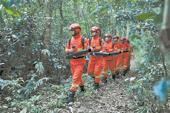 春节期间,为守护保山城区30万人的“天然氧吧”,保山市森林消防支队腾冲市中队的消防队员在高黎贡山原始林区执行巡护任务。
