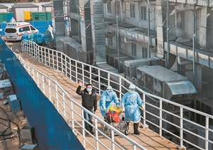 据新华社武汉2月4日电(记者 贾启龙 黎云) 经过军队支援湖北医疗队扎实细致、紧张有序的准备工作,武汉火神山新型冠状病毒感染肺炎专科医院开始正式接诊新型冠状病毒感染的肺炎确诊患者。4日9时30分,在军队医护人员的陪护下,由武汉市定点收治医院转诊而来的部分患者缓缓走进病房,一些身体虚弱的患者则或乘坐轮椅或躺在病床上被推进病区。 为了提高科学施治质量,在收治病人前,军队支援湖北医疗队医护人员预先进行了严格的培训和考核,明确医护人员“不达标不上岗”。同时,医院还安排10余位感染病、呼吸、重症医学等专家 “坐镇”,确保疑难重症患者在诊断时能“一锤定音”。 患者被收治病房后,全身严密防护的医生带着护士开始逐间查房,详细询问每个患者的病情,并给呼吸不畅的患者通上了氧气。4日起,他们将在隔离区内接受军队支援湖北医疗队的全面诊治。 图为武汉火神山新型冠状病毒感染肺炎专科医院医护人员将患者送入病房。新华社记者 肖艺九 摄
