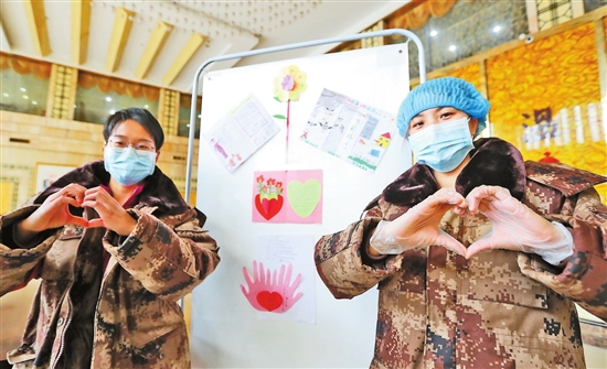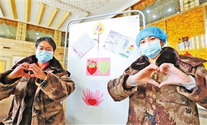 2月23日10时,云南省对口支援湖北咸宁医疗队队员们上完夜班回到酒店,迎面而来的小图画和文字,暖化了队员们。 “致最美的逆行者:亲爱的叔叔阿姨们,你们为了咸宁人民的生命安全,不远千里,不辞辛苦,抗战在与病魔斗争的前线。你们就是我心目中的英雄!”“奉献坚持是你的名字,逆风而行是你的故事,咸宁因为有你更美丽。”“亲爱的白衣天使们,我想把鲜花送给你,把最美的彩虹送给你,把火红火红的爱心送给你,你们幸苦了!”……在酒店大堂的墙壁上,在一楼到六楼医疗队员宿舍的楼道里,随处可见这样的祝福。孩子们用自己稚嫩的小手,画了一幅幅充满爱的小画片。这是来自咸宁外国语学校玉泉校区306班的65位小朋友给云南医疗队员们一份特殊的礼物。 云南医疗队员驻地的瑶池酒店总经理姚英奇说,这些画是他女儿所在学校的65位同班同学,听说云南医疗队住在她爸爸工作的酒店,纷纷在家画起了画,写上祝福送来的,两天的时间小朋友们共画了130多幅画。 这是今天云南医疗队队员们收到最温馨的祝福。 云报全媒体记者 李荣 杨峥 发自湖北咸宁