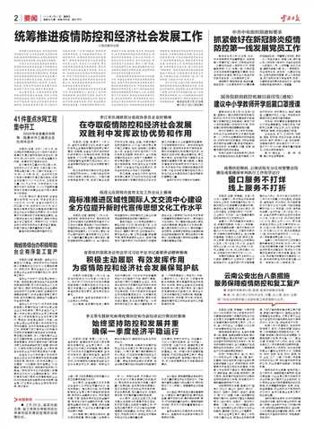 本报讯(本报记者) 2月26日,省委组织部举行2020年第6次部务会议,传达学习习近平总书记在统筹推进新冠肺炎疫情防控和经济社会发展工作部署会议上的重要讲话精神和省委贯彻落实要求,研究贯彻落实意见。 省委常委、省委组织部部长李小三主持会议并讲话。 会议强调,在疫情防控进入最吃劲的关键阶段,习近平总书记的重要讲话为我们指明了方向、提供了遵循。组织部门要切实提高政治站位,深刻领会党中央对疫情防控形势的科学判断,坚定必胜信心、积极主动履职、有效发挥作用,不折不扣把中央和省委各项决策部署落到实处,为疫情防控和经济社会发展保驾护航。要抓紧研究细化措施,抓实在疫情防控一线考察识别干部工作,强化对基层党员、干部、人才特别是医务人员的关心关爱,认真做好火线入党工作,及时宣传表彰先进典型;要发挥基层党组织和党员队伍作用,帮助企业解决实际困难和问题,助力复工复产复学,有力推动抓党建促脱贫攻坚等工作;要将业务工作与疫情防控工作同安排、同部署,确保两手抓、两手硬,两不误、两促进,确保疫情防控工作和全年组织工作都取得好成绩。