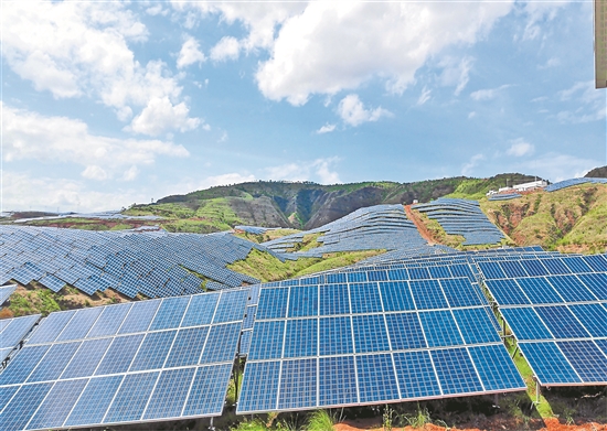 春日阳光照耀下,元谋县物茂乡凹鲊村委会半山腰上的连片光伏板熠熠生辉,为当地群众脱贫带来充足“能量”。2014年,元谋绿电新能源开发有限公司租用当地1720亩荒地,开发装机容量达5万千瓦的光伏发电项目,次年底开始产生效益。原来的贫困村,如今每年有23万元土地租金收入,村委会还与公司签订每年36万元的除草协议,贫困户上山除草每天有120元报酬。本报记者 饶勇 通讯员 贾冬冬 马赛速 文斌