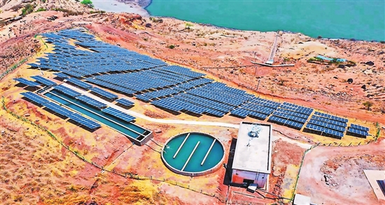 在元谋县姜驿乡,站在山岗上就能看见金沙江,但过去够不着、用不上,天不下雨就吃不上水、浇不了地。 2016年,投资5007.25万元的金沙江提水工程开始建设,通过金沙江上规模最大的光伏水泵系统,将江水经三级抽取至相应储水点后,再通过架设管道把水输送到村到户。两年后,项目完工,每天可抽水1440立方米,年供水量达52.08万立方米,有效解决了姜驿乡13672人的生活生产用水难题。 通过实施提水工程,如今的姜驿乡“水源-大水池-小水池-水窖-农户”的供水体系已基本形成,“靠天吃饭”的状况得到改善,产业得到快速发展。全乡通过发展蜜桃、甜杏、樱桃、芒果等特色经济林果和肉牛、黑山羊、土鸡等养殖,已逐步构建起“一村一品”产业发展格局,贫困群众正一步步向全面小康迈进。姜驿乡现已脱贫1400户4831人,8个深度贫困村退出,贫困发生率从2014年的36.9%降至2019年底的0.17%。 本报记者 饶勇 通讯员 杞树超 崔丽洪 摄影报道