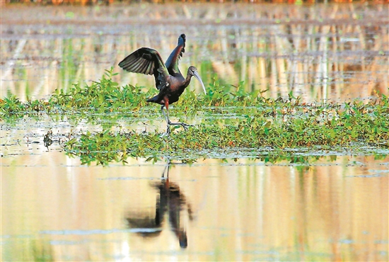 本报讯(记者 张雁群 通讯员 李继明) 近日,云南野鸟会会员在昆明市晋宁区滇池东大河湿地拍摄到1只彩鹮,这是继2017年1月21日首次在滇池发现10只后,时隔3年,彩鹮又在东大河湿地出现。 据了解,彩鹮是国家二级保护动物,由于曾连续多年未在我国观测到,中国濒危动物红皮书一度宣布彩鹮在中国绝迹,它在中国的数量比它的近亲——国家一级保护动物朱鹮还少。因为栖息地的减少和环境污染问题,现已濒临绝迹。 近年来,滇池治理取得良好成效,为野鸟提供了良好的栖息环境和充足食源,越来越多的野鸟开始频频造访滇池及周边湿地。