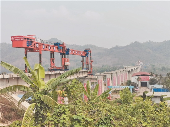 4月9日,随着一榀重达130余吨的预制简支T梁平稳地落在桥墩上,由中国中铁八局承担施工的中老铁路琅勃拉邦湄公河特大桥架梁工作正式开始。该桥全长1458.9米,由28跨T梁和6跨连续梁构成,是全线施工难度最大、技术最复杂的桥梁,预计将在4月底完成架设。 新华社发(中铁八局供图)